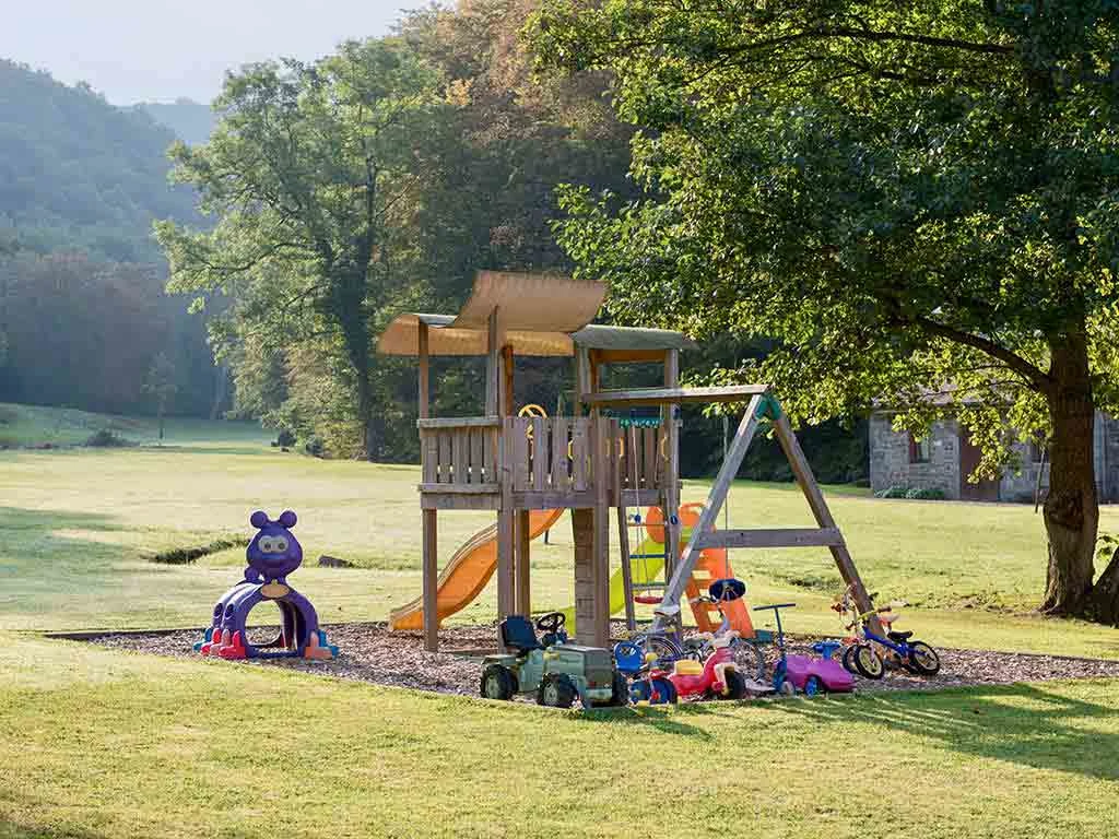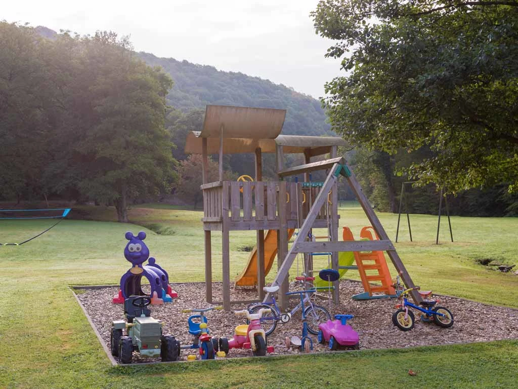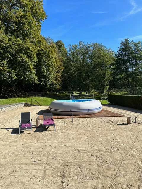Les plus petits peuvent s'amuser sur le terrain de jeu, et en été, nous installons une piscine pour eux dans le grand jardin.
