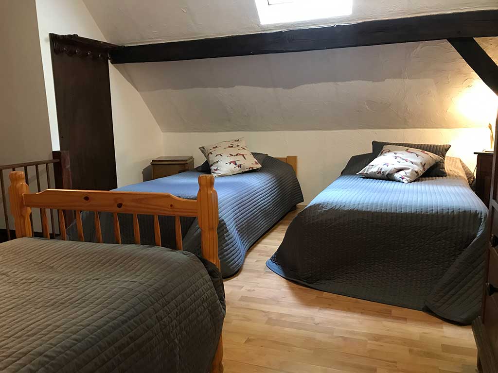 - Etage 2 : 3 lits de 1 personne (chambre grenier)