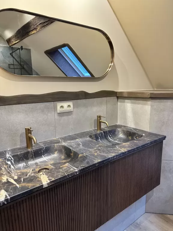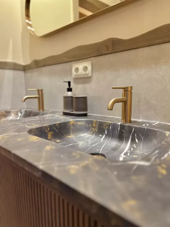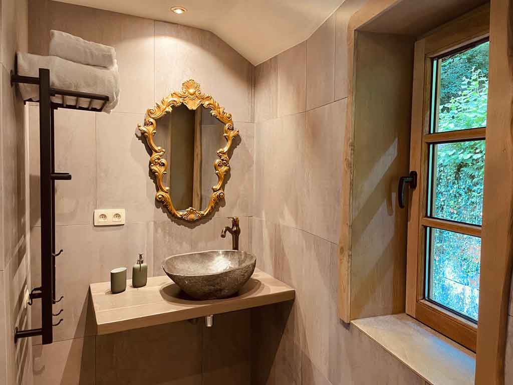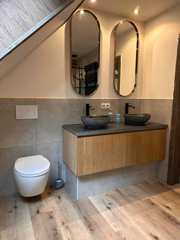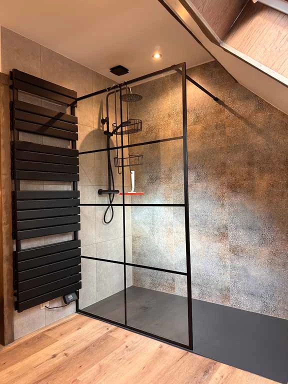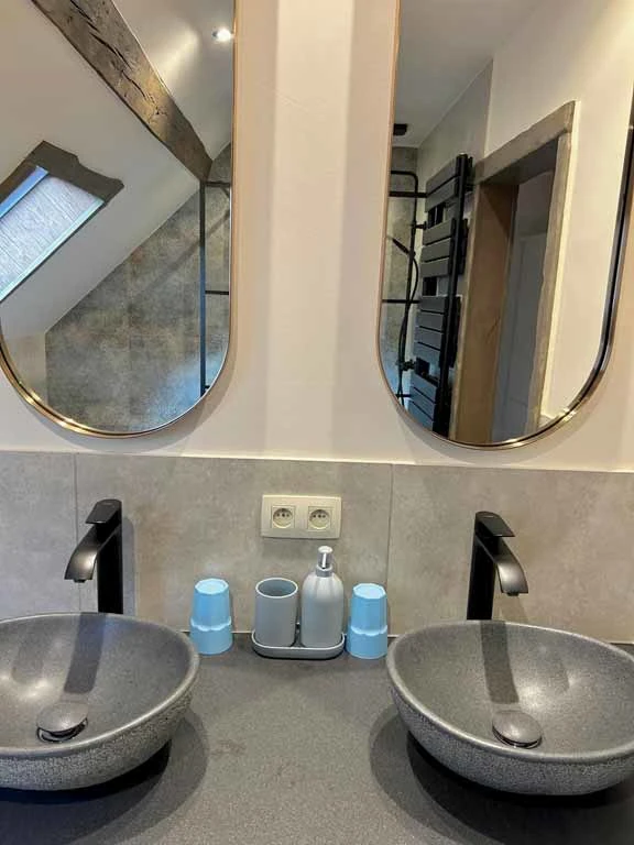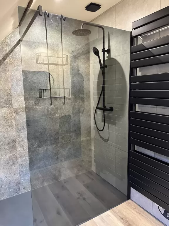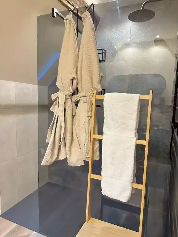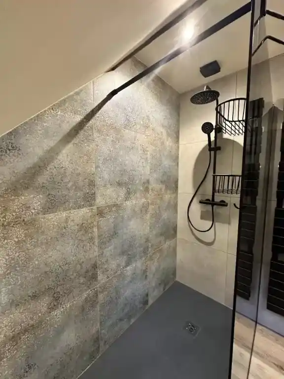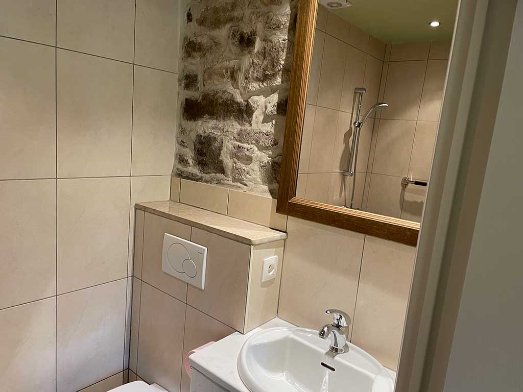 - Salle de bain avec douche à l' italienne, 1 vasque + 1 wc