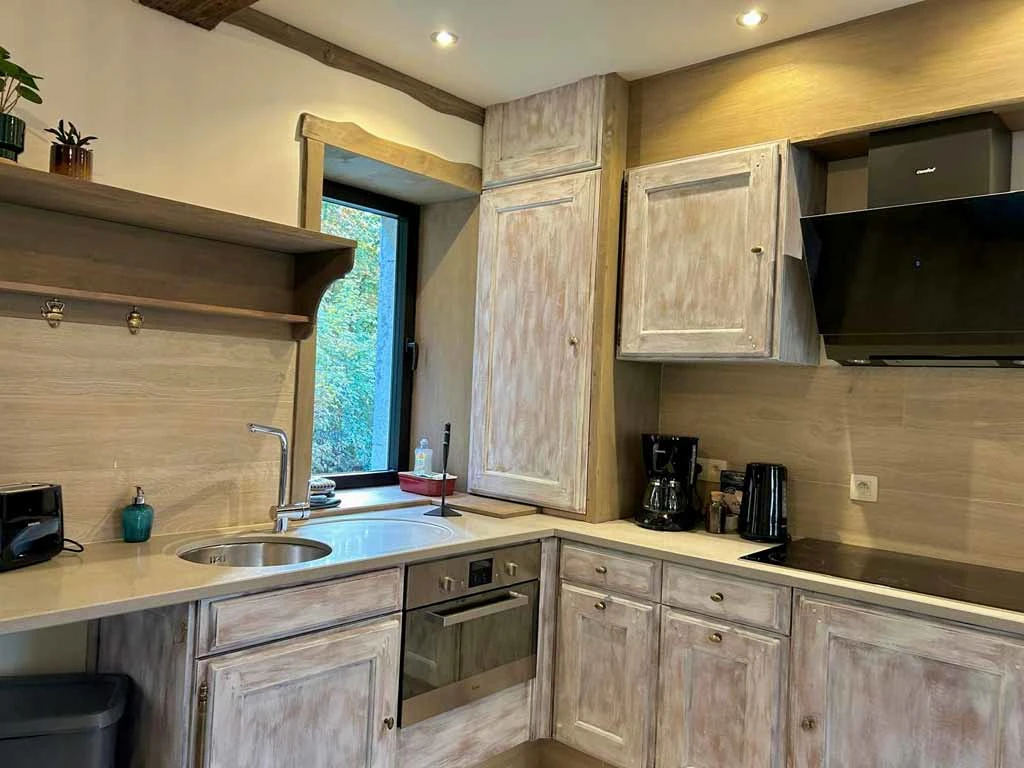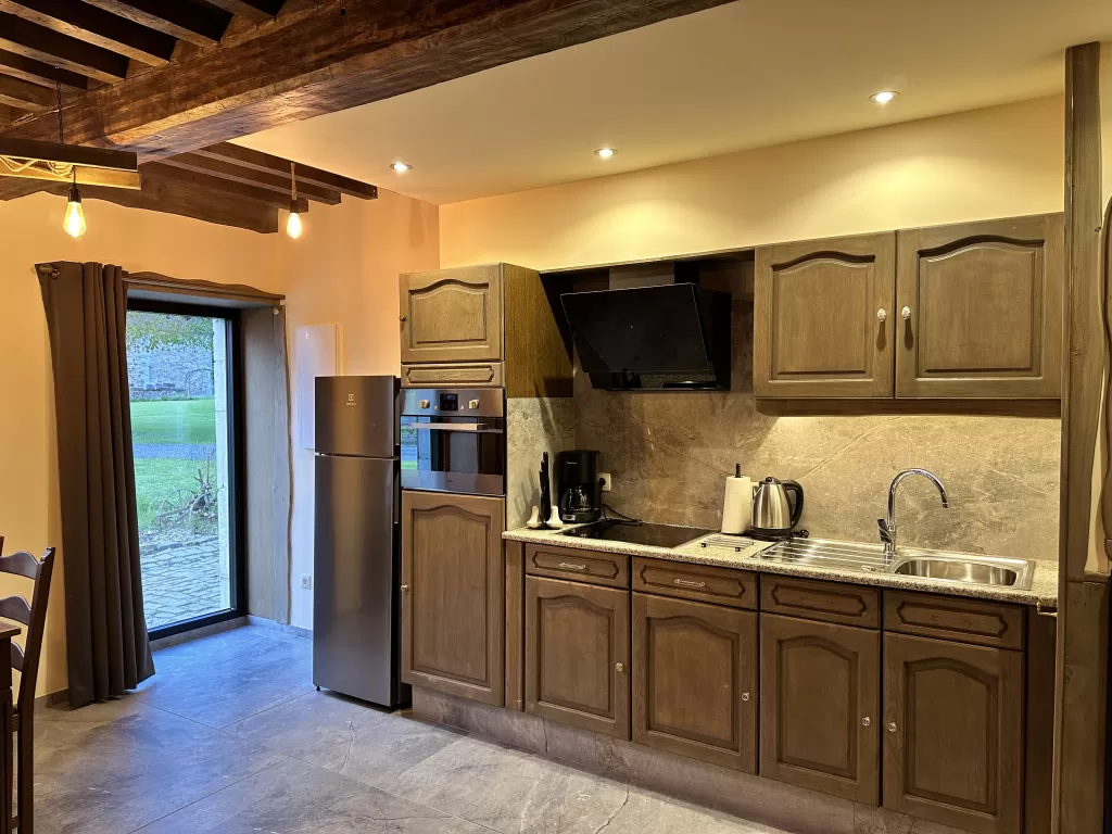 - 1 grande cuisine (four à micro-ondes, réfrigérateur + petit congélateur, cafetière, grille-pain) les filtres à café sont offerts par le domaine