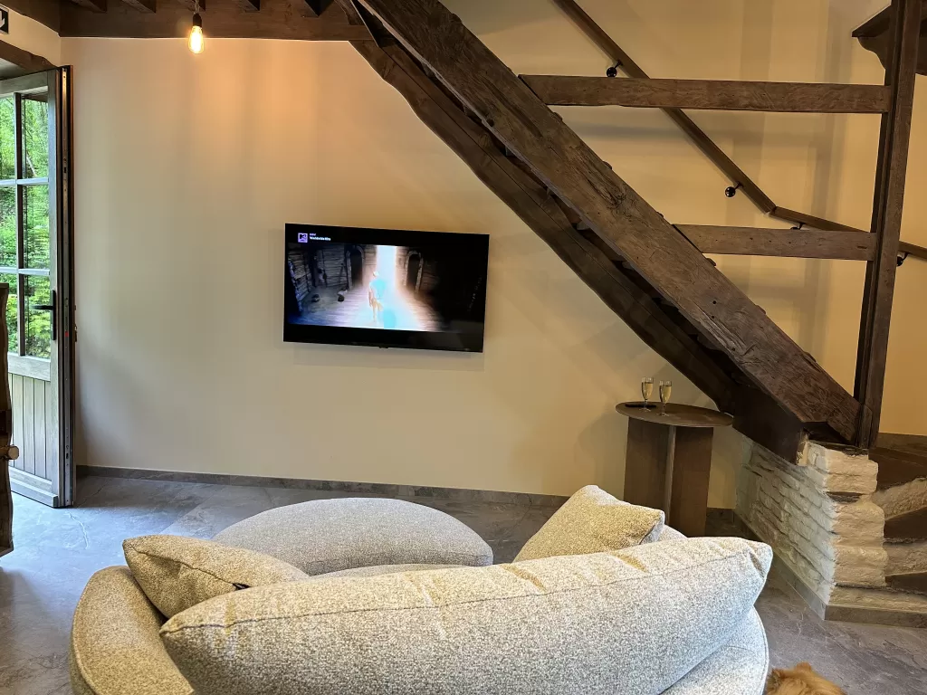 - 1 grande salle à manger + chaîne hifi + cheminée (vous pouvez acheter le bois sur place)